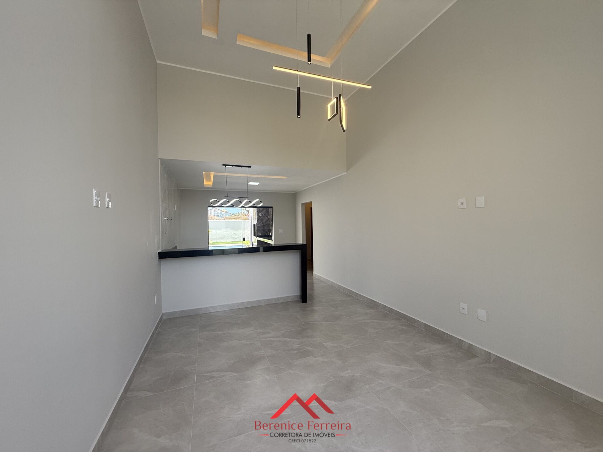 - Sala ampla com pé-direito alto, proporcionando sofisticação e ventilação natural