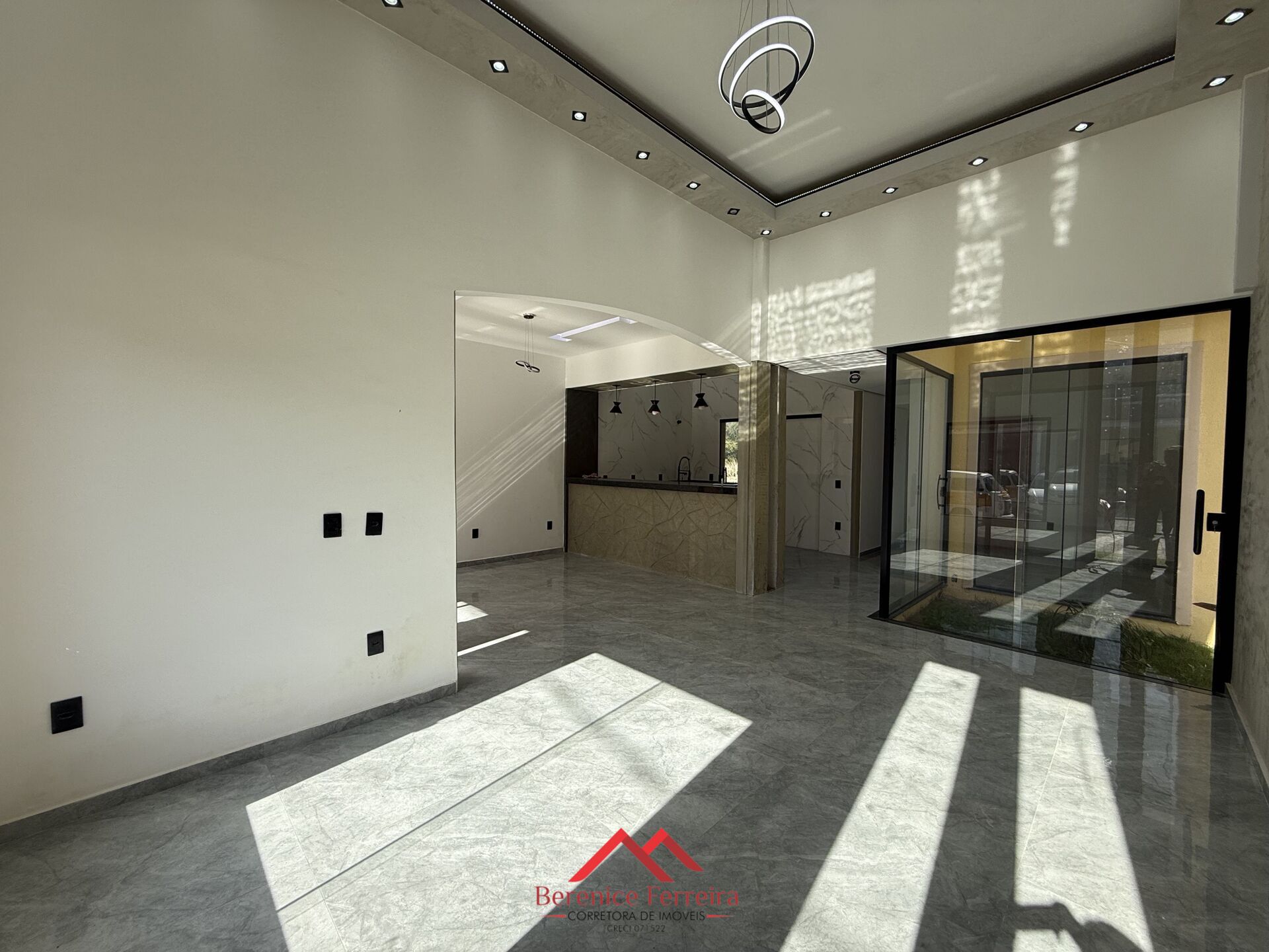 - Sala ampla com rebaixamento em gesso e luminárias modernas