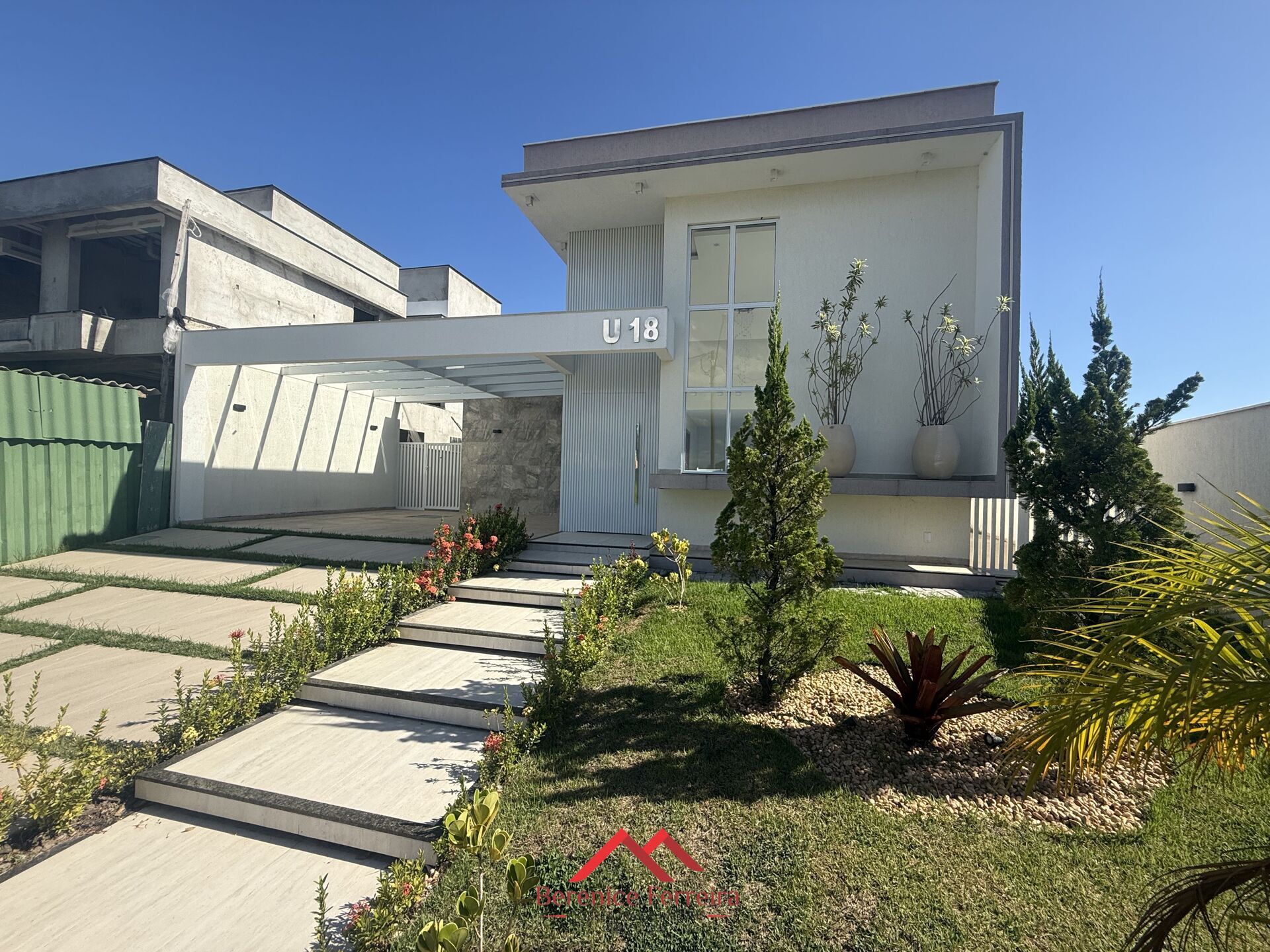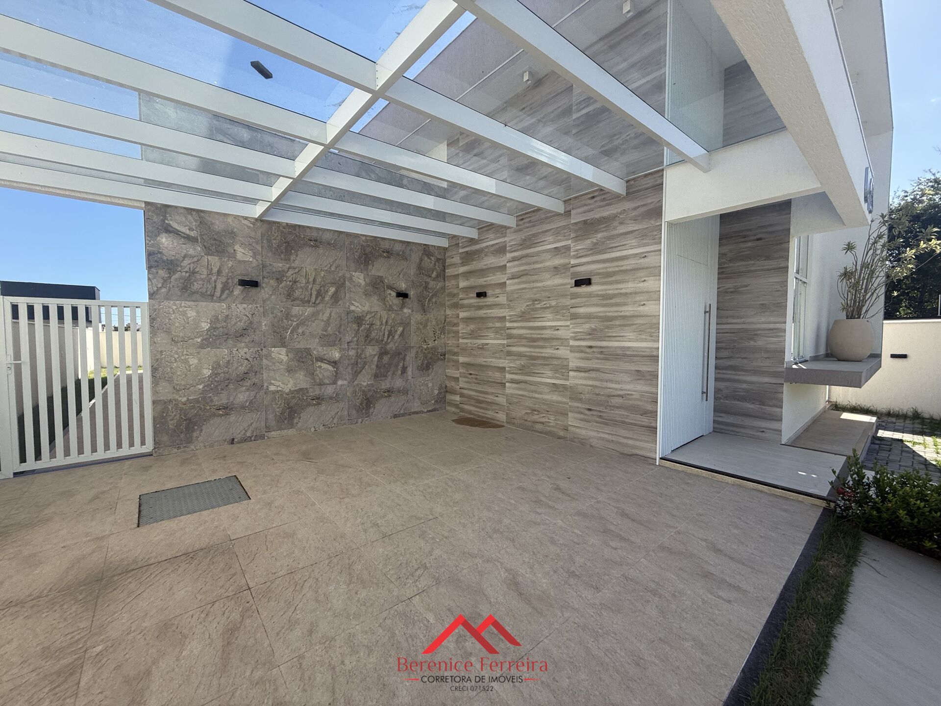 O imóvel conta com garagem com pérgolado coberto em vidro, proporcionando charme e proteção, além de um agradável jardim que valoriza ainda mais a fachada.