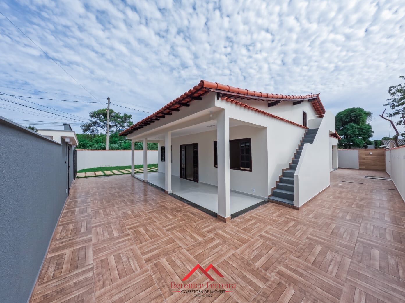 Varanda grande na frente e atrás.